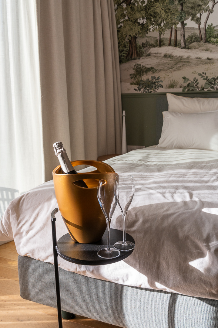 The guest rooms are named after different buildings in Bruges that were designed by Jean-Brunon Rudd.